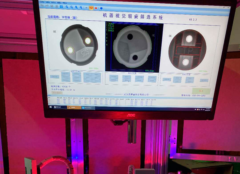 本實(shí)用新型通孔檢測設(shè)備,解決了溫控器陶瓷導(dǎo)向架中心孔變形、粉塵、毛刺、堵孔等不良問題,多年來可做到客戶零投訴率。 技術(shù)領(lǐng)域: 本實(shí)用新型屬于陶瓷產(chǎn)品加工技術(shù)領(lǐng)域,具體涉及一種陶瓷產(chǎn)品通孔檢測設(shè)備。 現(xiàn)有技術(shù)存在以下問題:現(xiàn)在的陶瓷產(chǎn)品往往通過人工進(jìn)行通孔檢測,進(jìn)而進(jìn)行篩分,造成檢測篩分時(shí)間長,效率低、成本高、易漏檢。 實(shí)用新型內(nèi)容: 為解決上述背景技術(shù)中提出的問題。本實(shí)用新型提供了一種陶瓷產(chǎn)品通孔檢測設(shè)備,具有檢測快速,篩分便攜,自動(dòng)化程度高,分辨率高,無漏檢等的特點(diǎn)。 為實(shí)現(xiàn)上